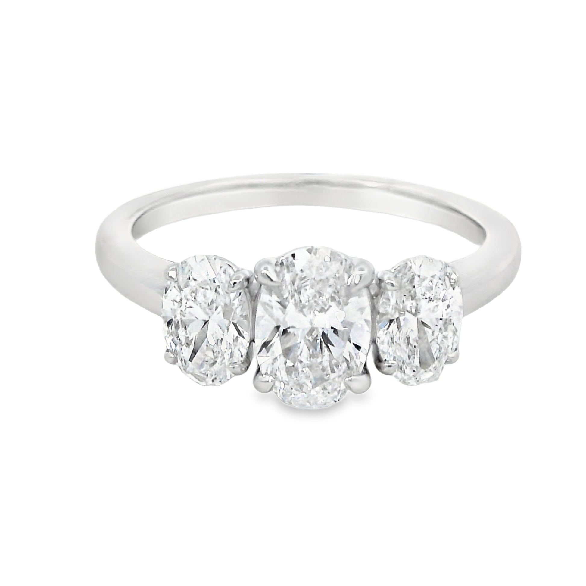 18ct White Gold Lab Grown Diamond Trilogy Ring 1.50ct - Oval Cut