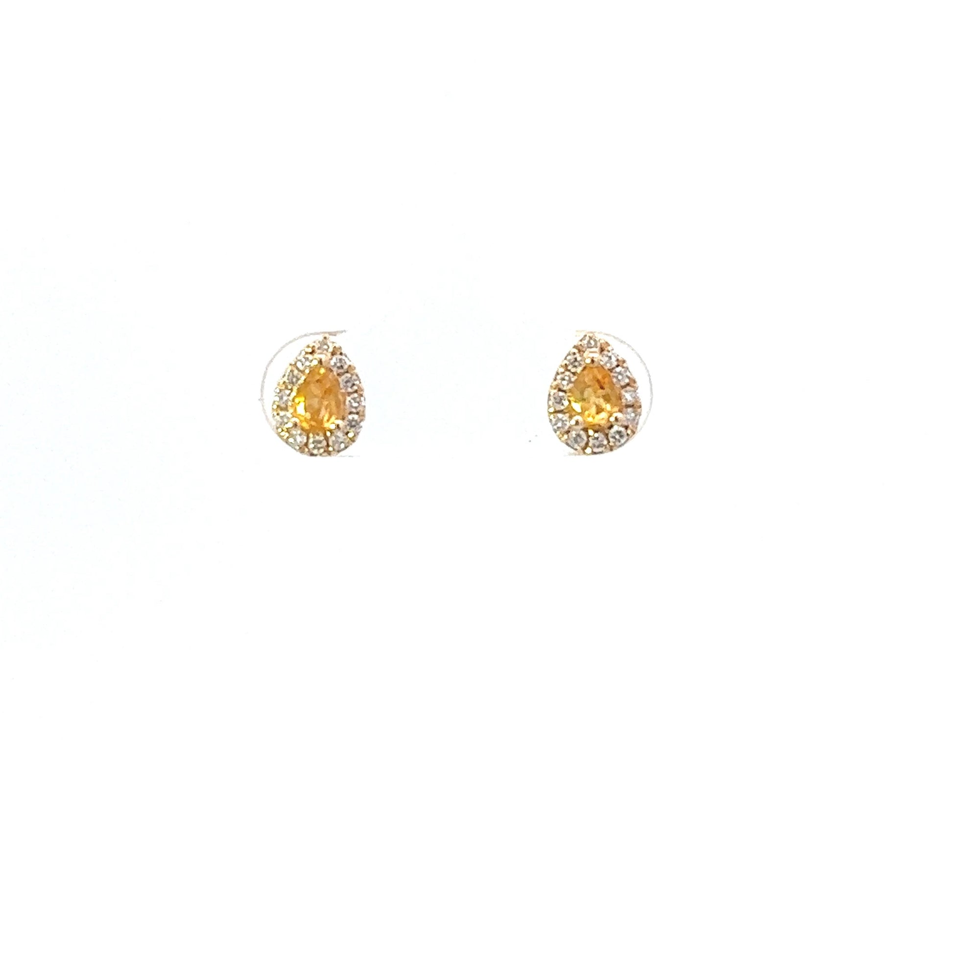 9ct Gold Pear Shaped Diamond Earrings - Citrine - November