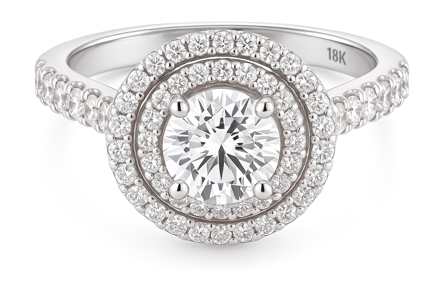 18ct White Gold Double Halo Diamond Halo Ring