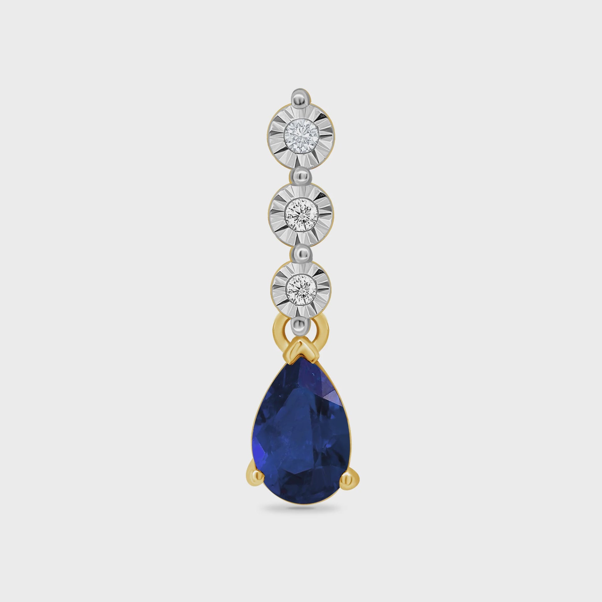 9ct gold 6x4mm pear shape sapphire & miracle plate diamond pendant 0.02ct and chain DSP1041