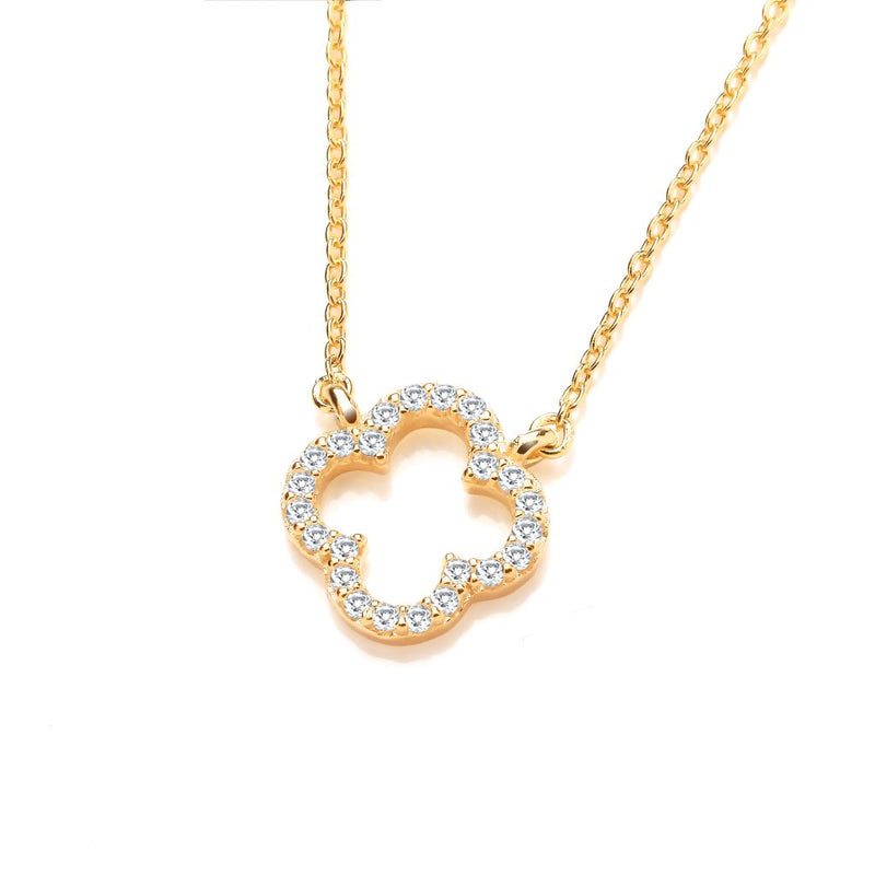 Gold Plated CZ Open Clover Necklace 6973G