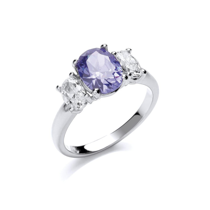 Silver Tanzanite Coloured CZ 3 Stone Ring 7247