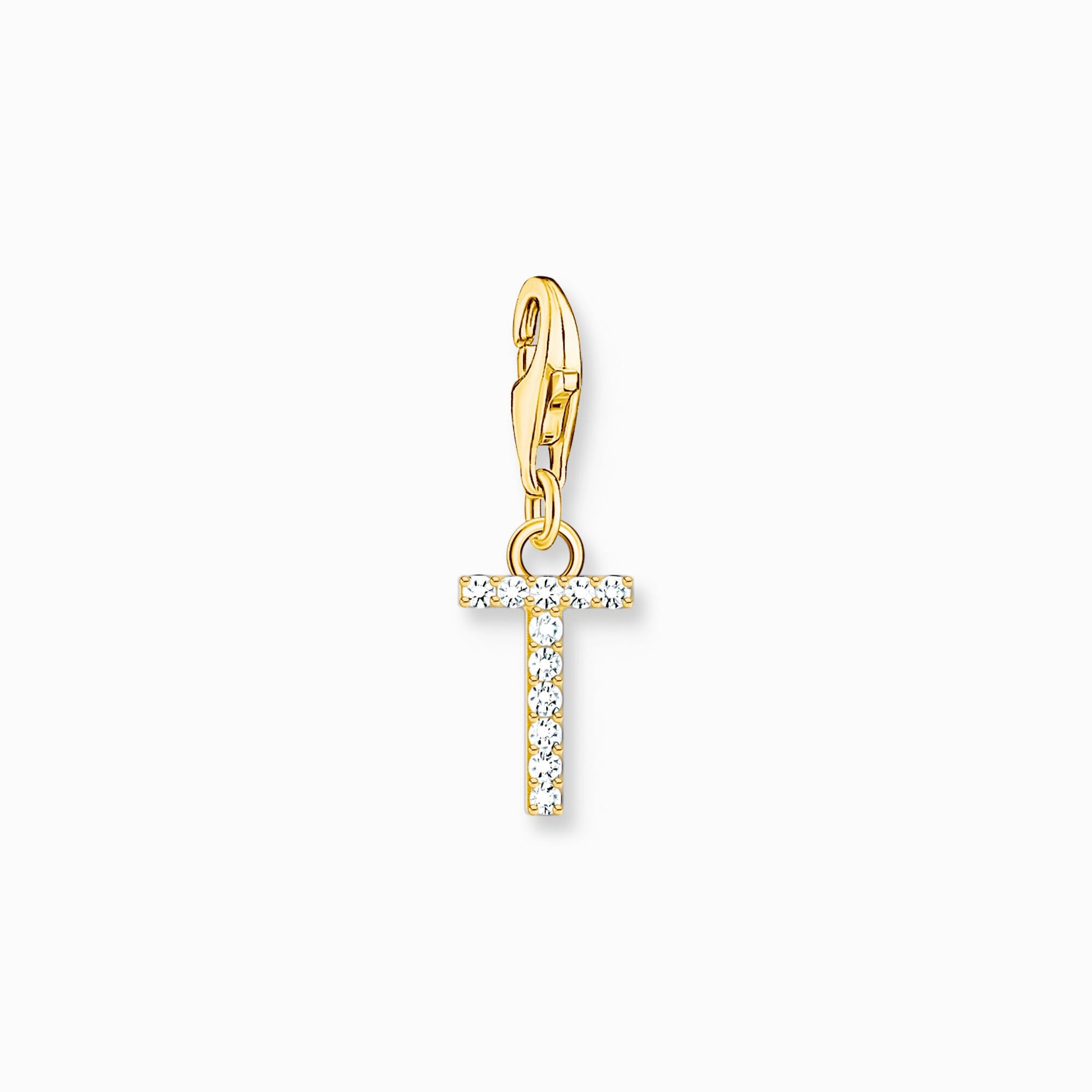 Thomas Sabo Charm pendant letter T with white stones gold plated 1983-414-14
