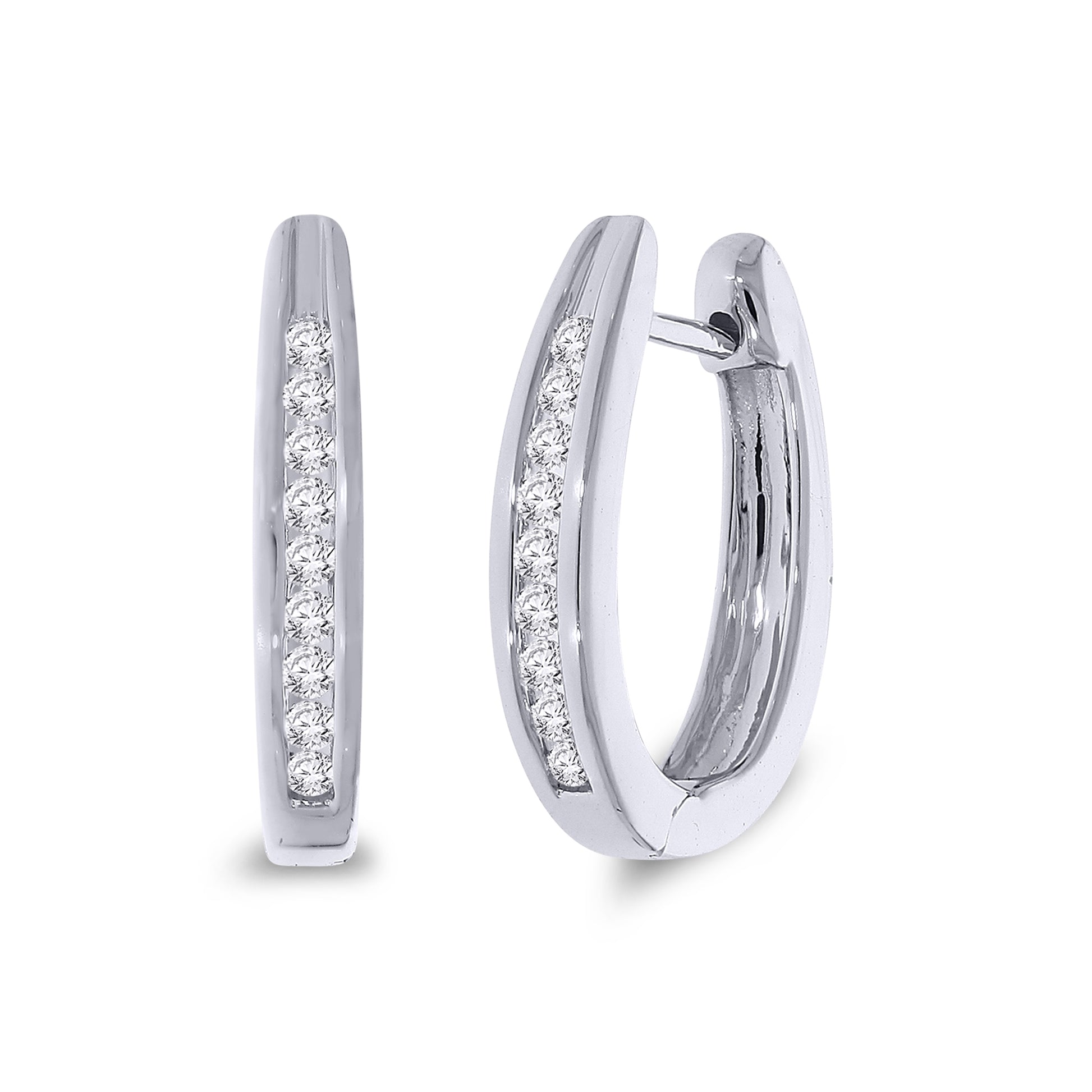 9ct White Gold Hoop Diamond Earrings
