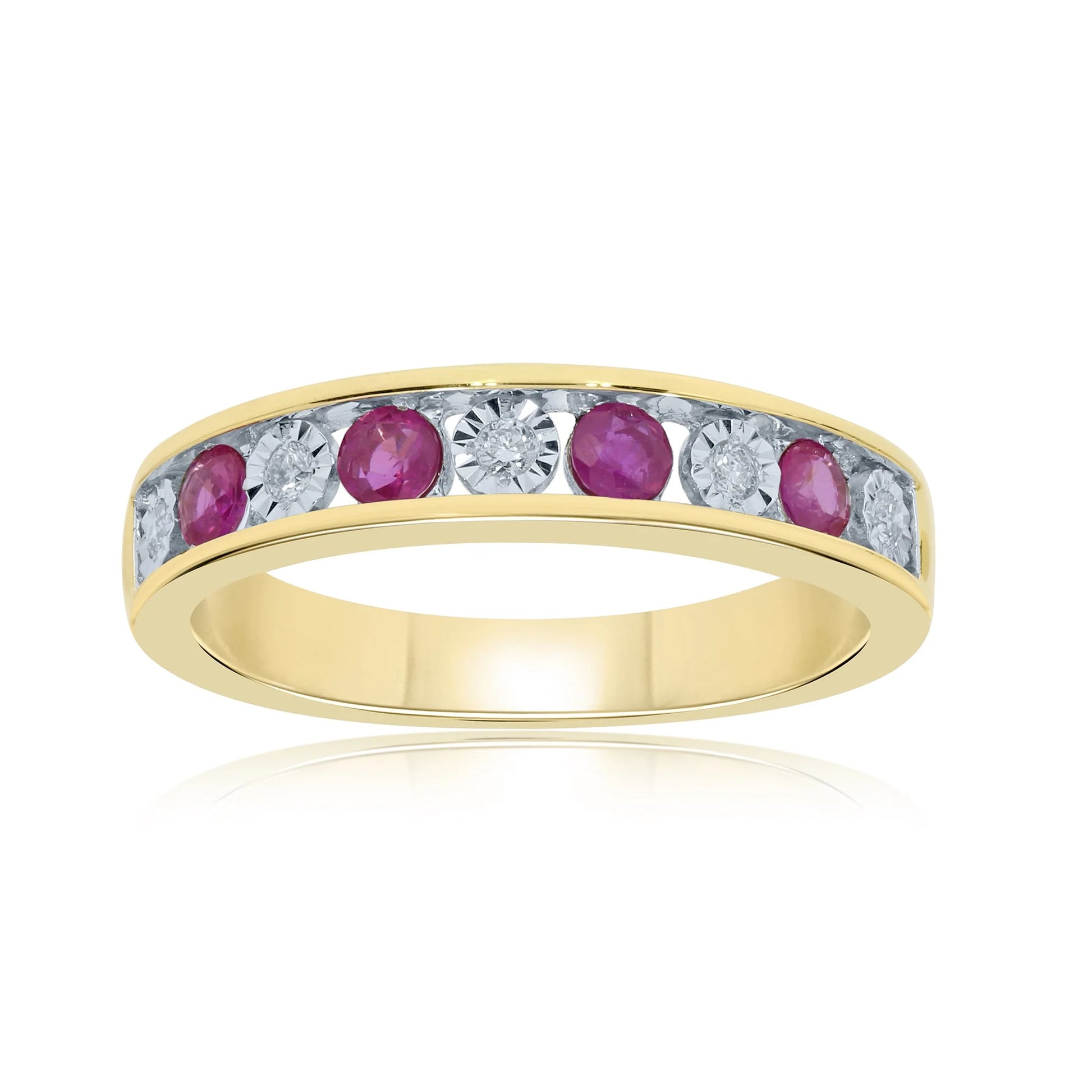 9ct Gold Ruby & Diamond Ring - Yellow Gold