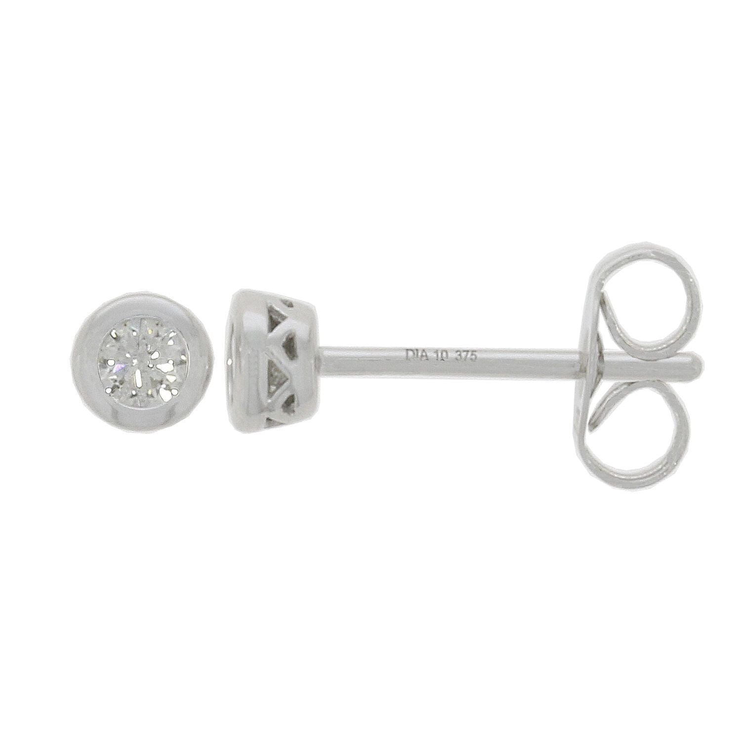 9ct White Gold Rubover Diamond Stud Earrings 0.20ct