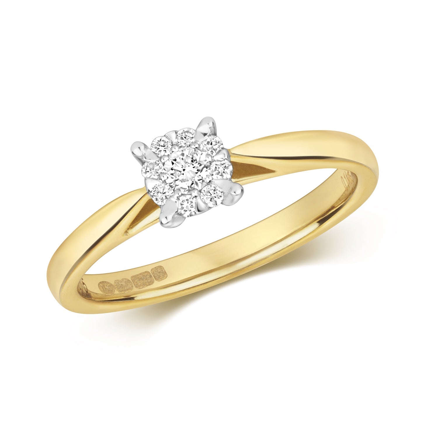 9ct Yellow Gold Diamond Ring - Illusion Set 0.13ct