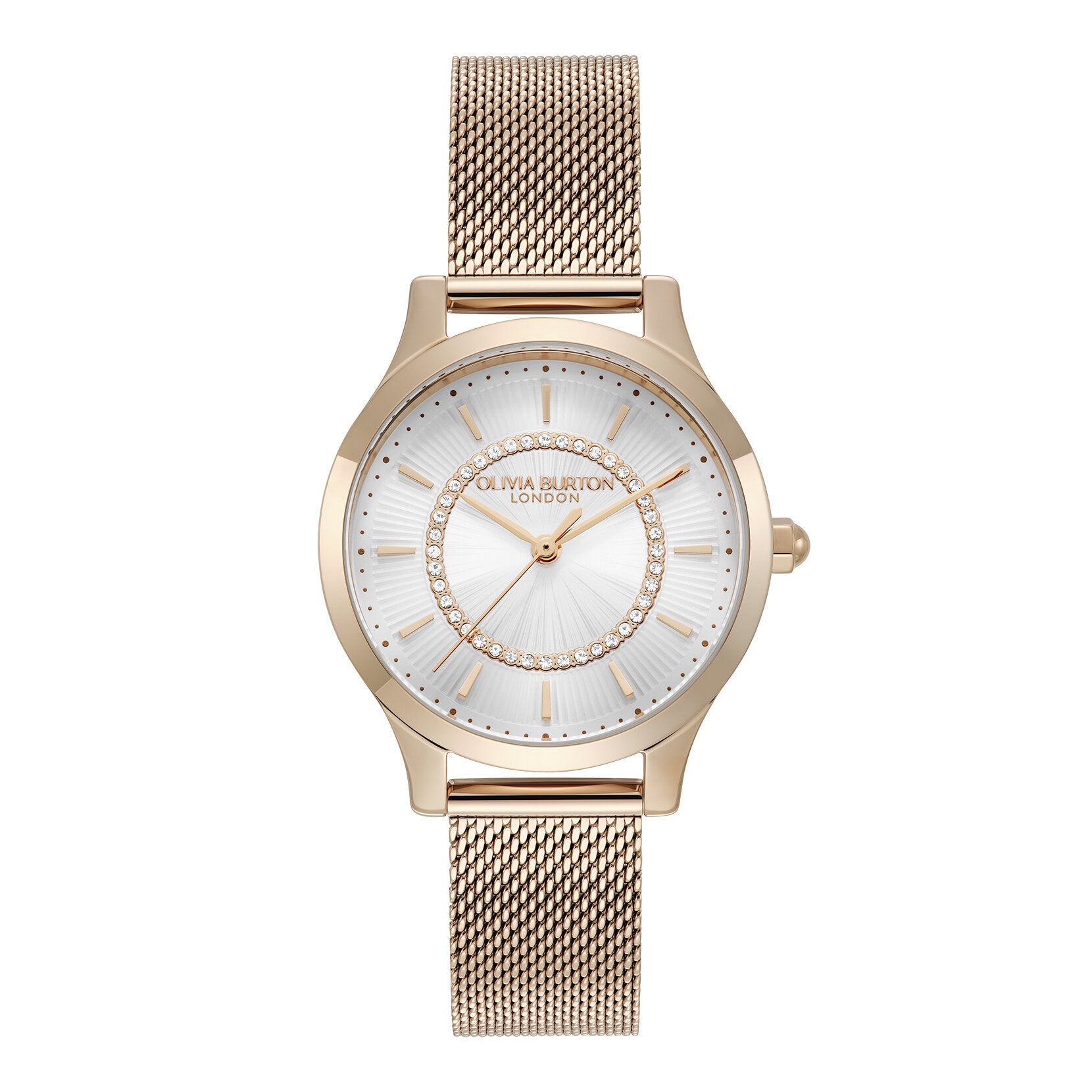 Olivia Burton 30mm Wonderlust White & Rose Gold Mesh Watch 24000213