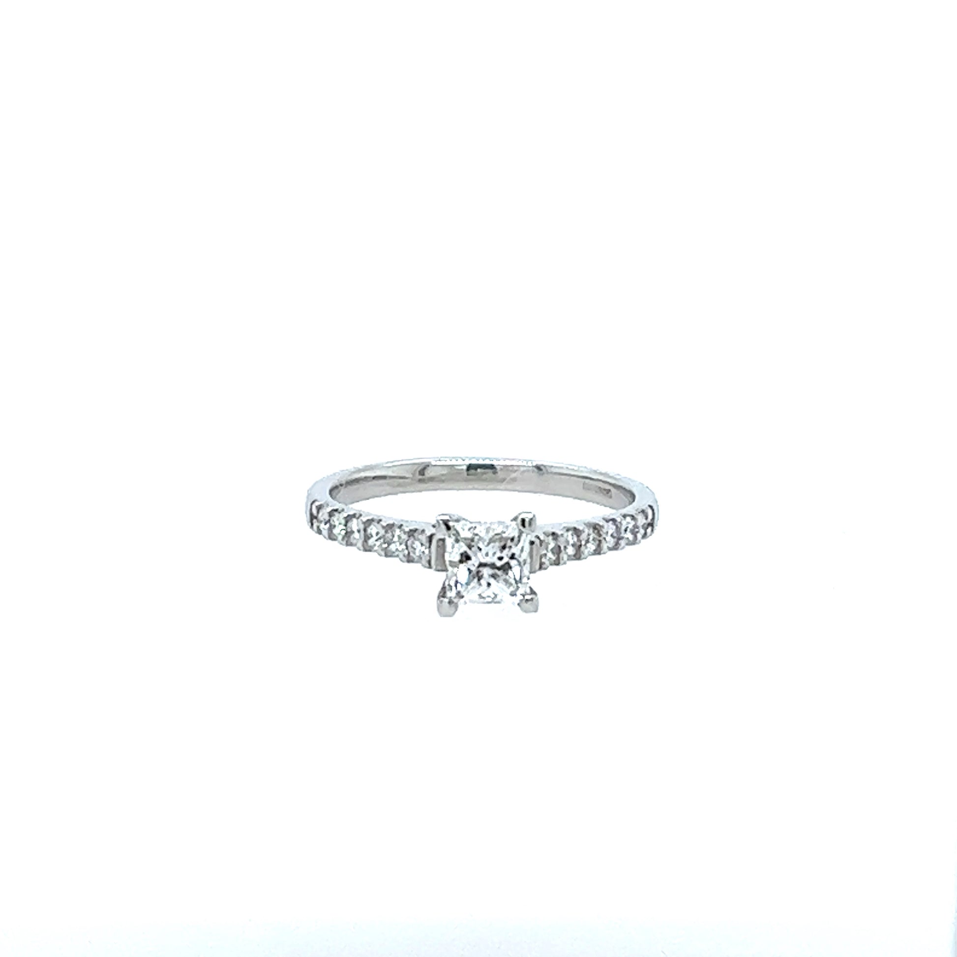 Platinum Diamond Princess Cut Solitaire Ring with Diamond Shoulders 0.78ct