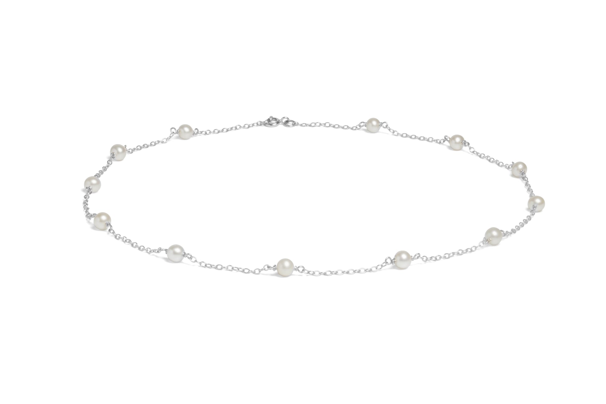 Trace Chain 5-5.5mm Cultured River Pearl 18" Necklace Silver NJR2065SILW
