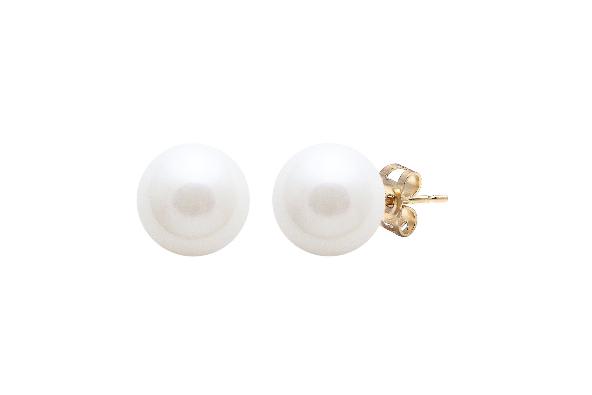 White Round Cultured River Pearl Stud Earrings 8-8.5mm 9ct Yellow Gold ESRWYG8