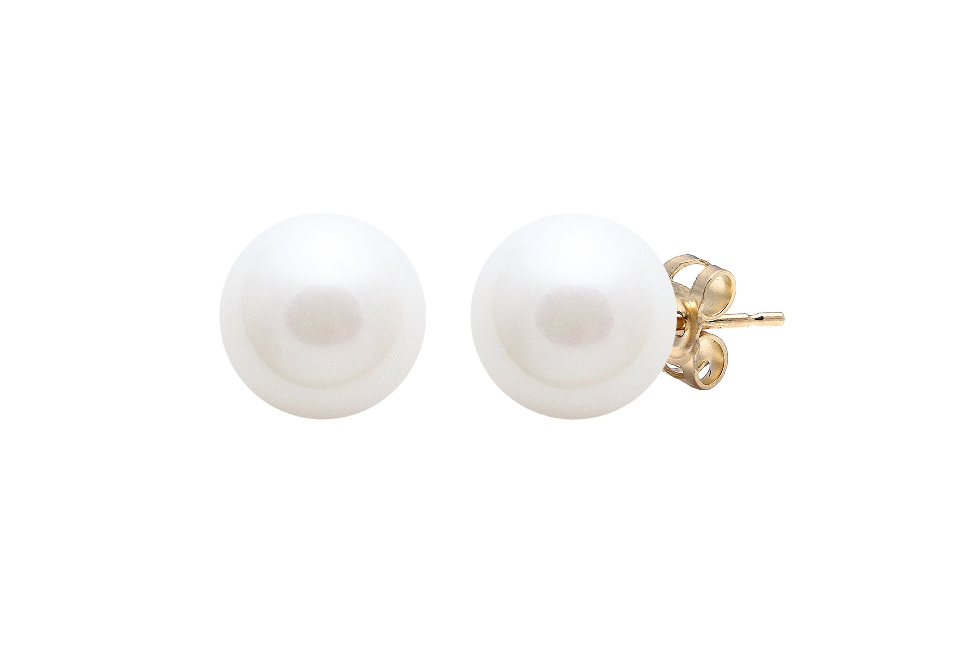 White Round Cultured River Pearl Stud Earrings 9-9.5mm 9ct Yellow Gold ESRWYG9