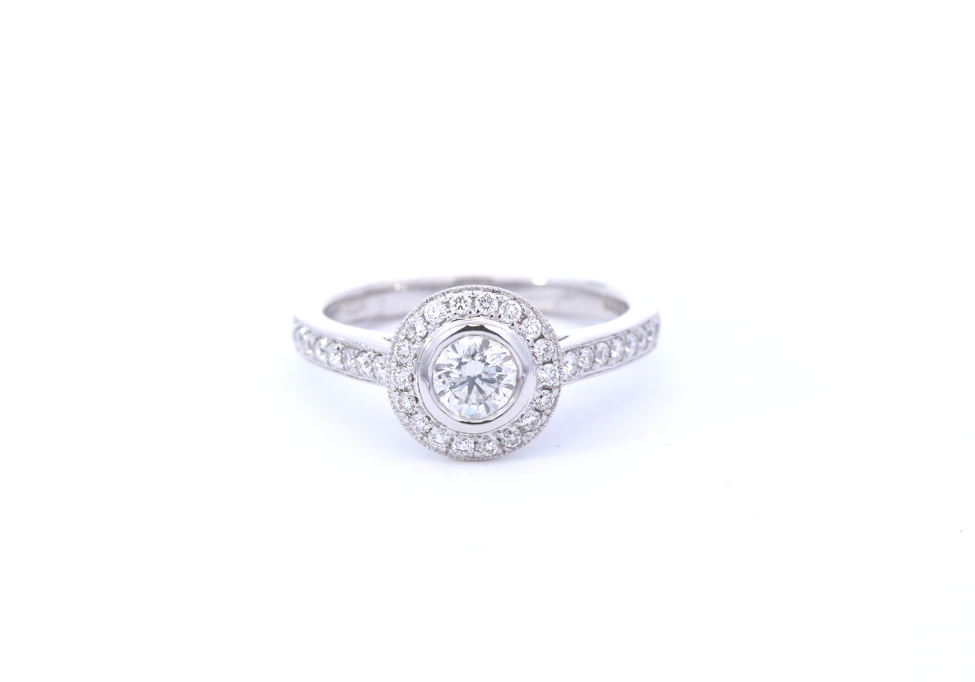 Total 0.77ct. Centre Diamond 0.43ct. Surround and Shoulders 0.34ct