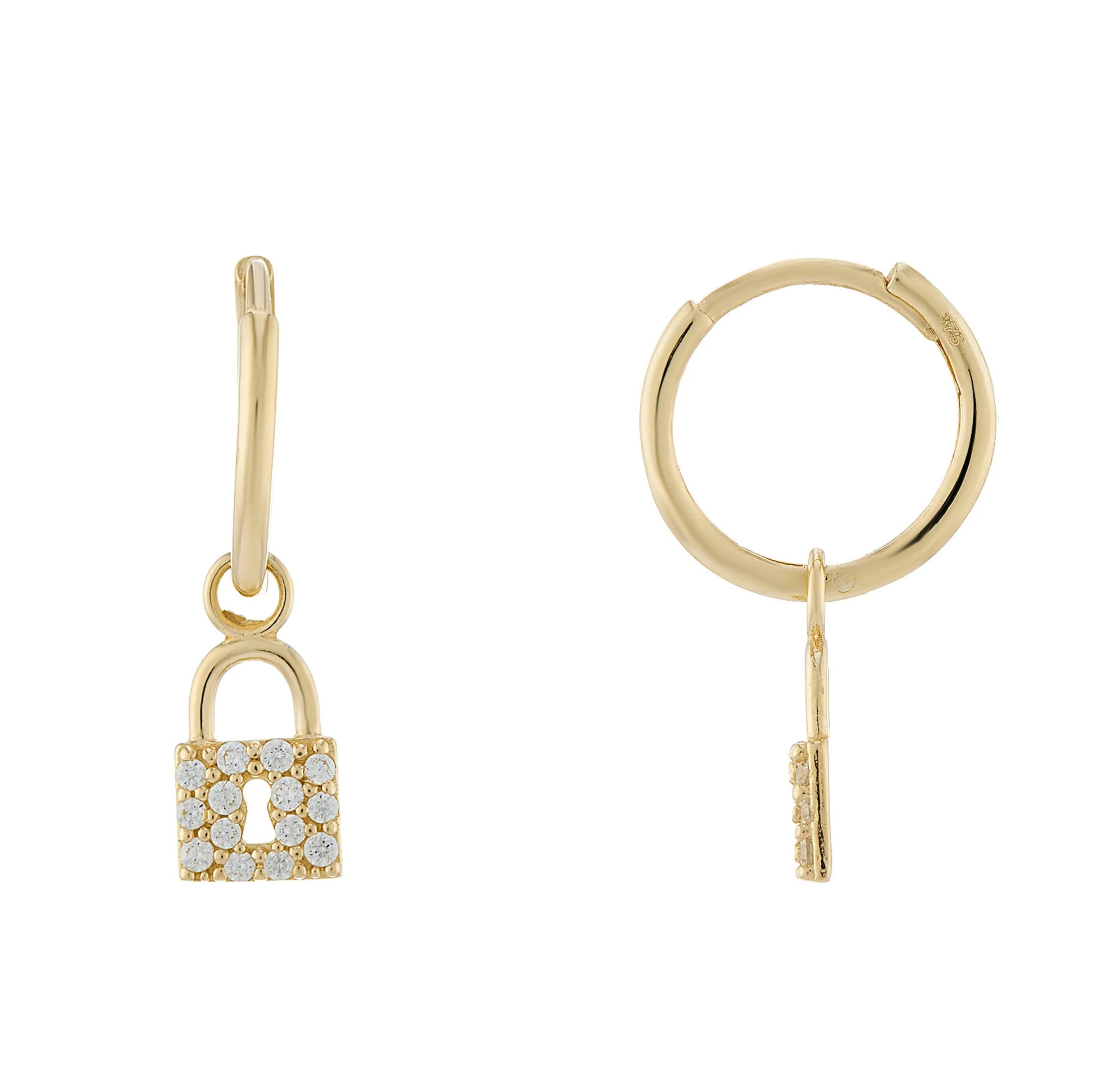 9ct Gold Plain Huggies with CZ Padlock