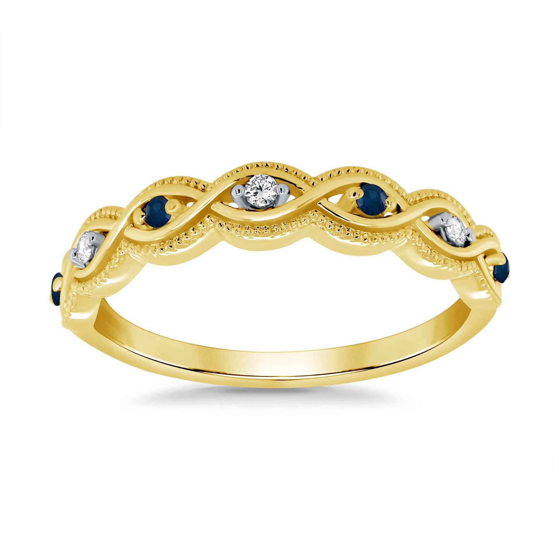 9ct YG Sapphire & Diamond Half eternity Ring 0.04ct DSR1765