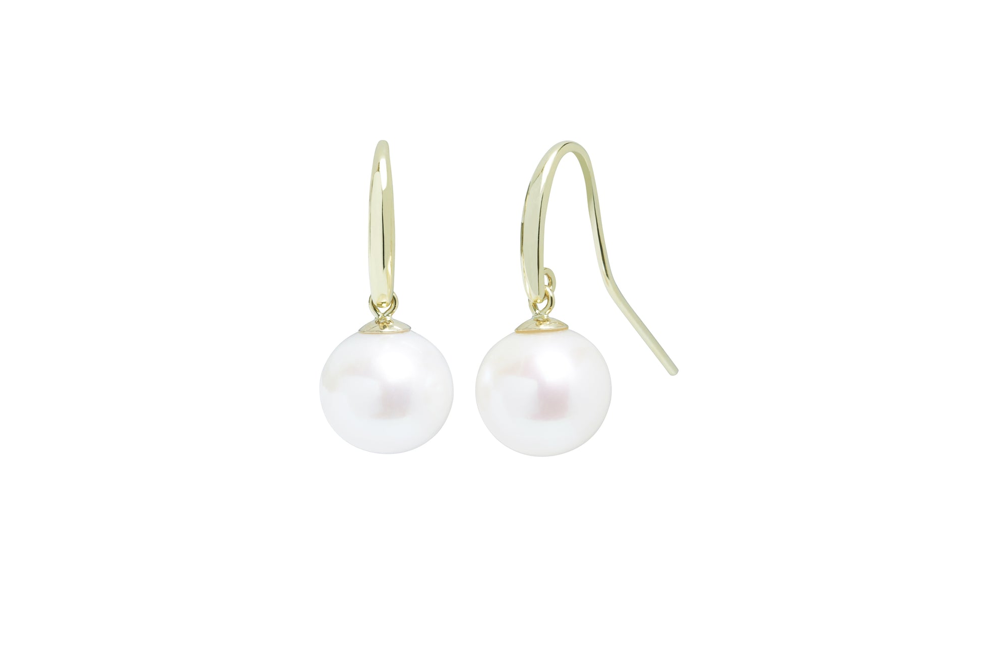 Shepherds Crook & Cap 10-10.5mm White Cultured River Pearl Drop Earrings 9ct Yellow Gold EDSHEPYGR10