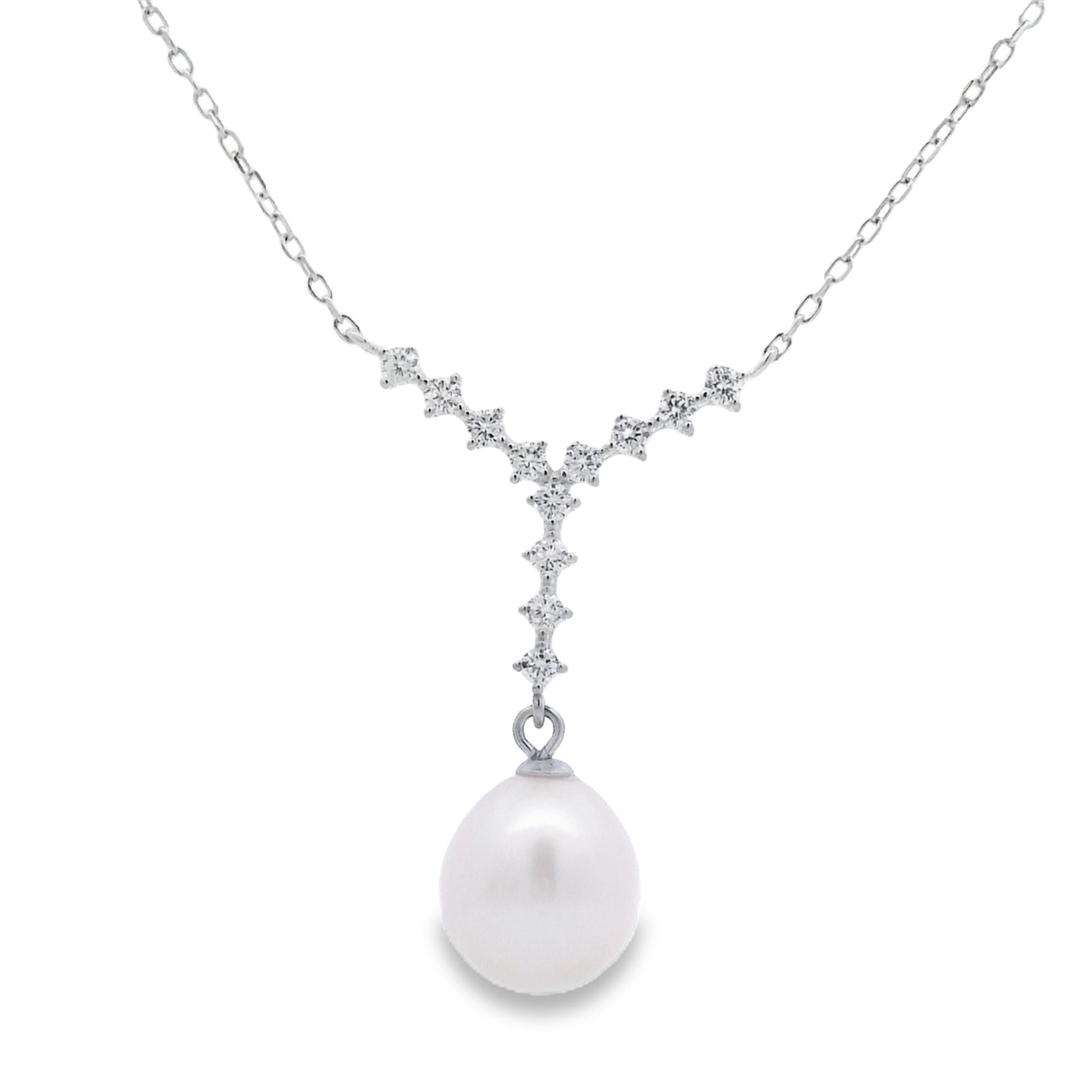 Silver CZ 10mm FW Pearl Necklace POW70378FW