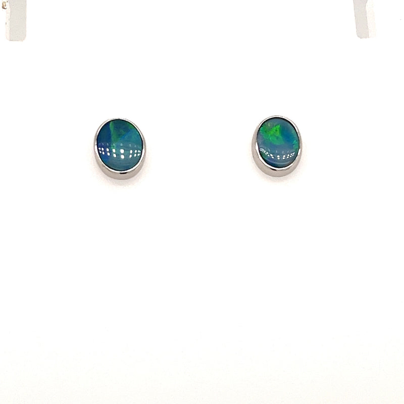 Silver Doublet 7x5mm Doublet Opal Earrings